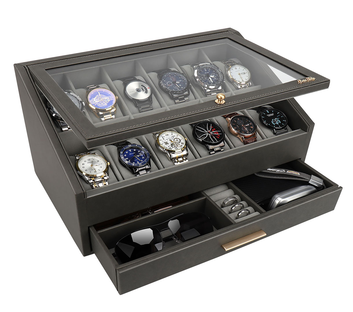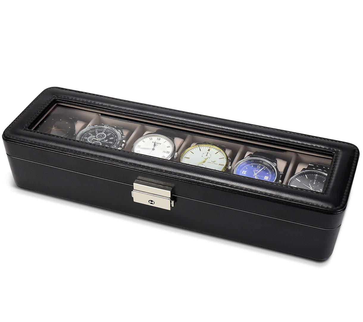The multi-layer partitions can hold a lot of things.Watches and necklaces can be classified and stored. It is easy to find them at a glance. No more messing around.I love it!